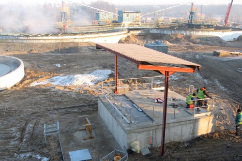 Nowe obiekty: osadniki końcowe, komora rozdziału i pompownia wody technologicznej (styczeń/luty 2011)